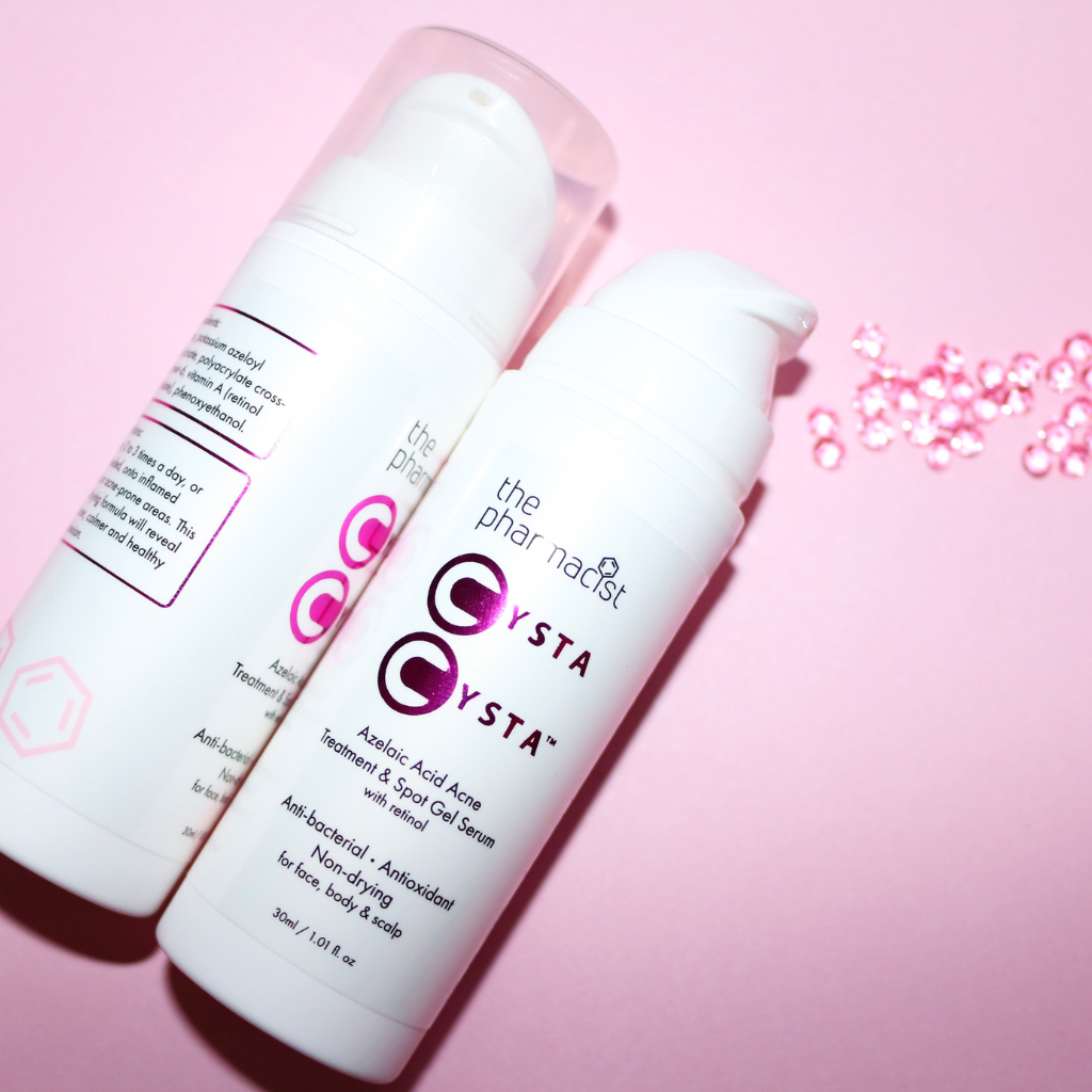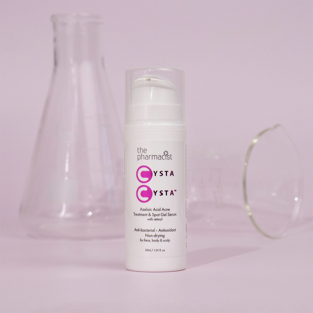 The azelaic acid in Cysta Cysta™ is one of the best acne-busting active ingredients. It has been clinically proven to kill bacteria responsible for acne by reducing its growth. It will also treat rosacea by decreasing the swelling and redness of the skin. This combined with retinol, allows increased cell turnover and unclogs pores, reducing the formation of acne scars, as well as cystic acne and breakouts drastically. Cysta Cysta™ reduces blackheads and also tackles pigmentation caused by breakouts. Suitable for all skin types. Cysta Cysta™ is formulated at an ideal pH for the skin between 5.0 - 5.5.